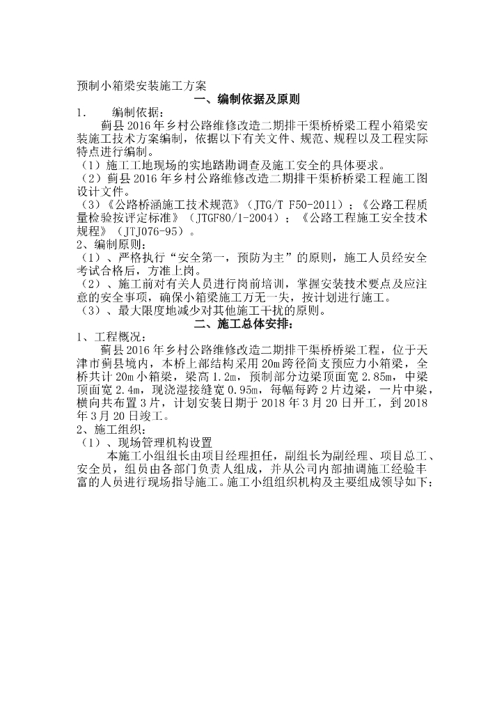 标准化桥梁预制小箱梁吊装施工方案​.doc