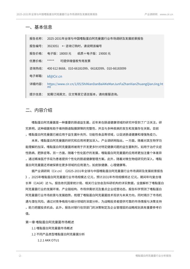 产业调研网:2025-2031年全球与中国嗜黏蛋白阿克曼菌行业市场调研及发展前景报告.pdf