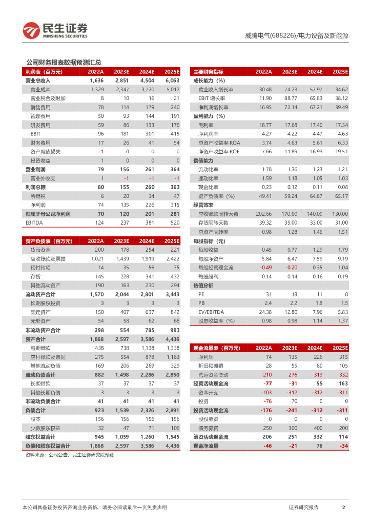 民生证券:威腾电气(688226)-2023年业绩快报点评:业绩符合预期,三大业务并驾齐驱稳步增长.pdf