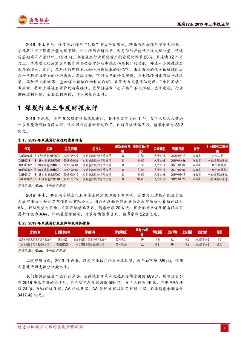 西南证券:煤炭行业2019年三季报点评:警惕行业供给过剩加剧,信用利差再上升.pdf