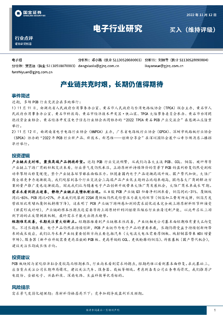 国金证券:电子行业点评:产业链共克时艰,长期仍值得期待.pdf