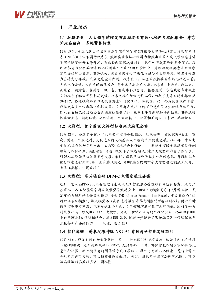 万联证券:计算机行业周观点:数据要素市场化持续推进,大模型加速落地.pdf