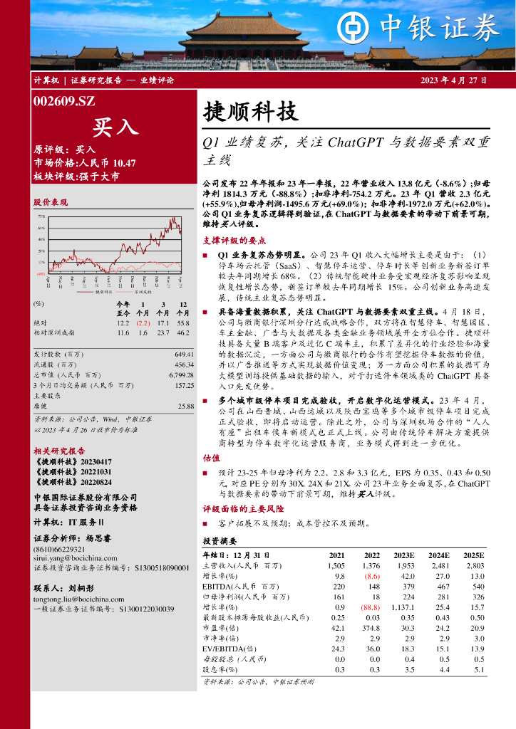 中银证券:捷顺科技(002609)-Q1业绩复苏,关注ChatGPT与数据要素双重主线.pdf
