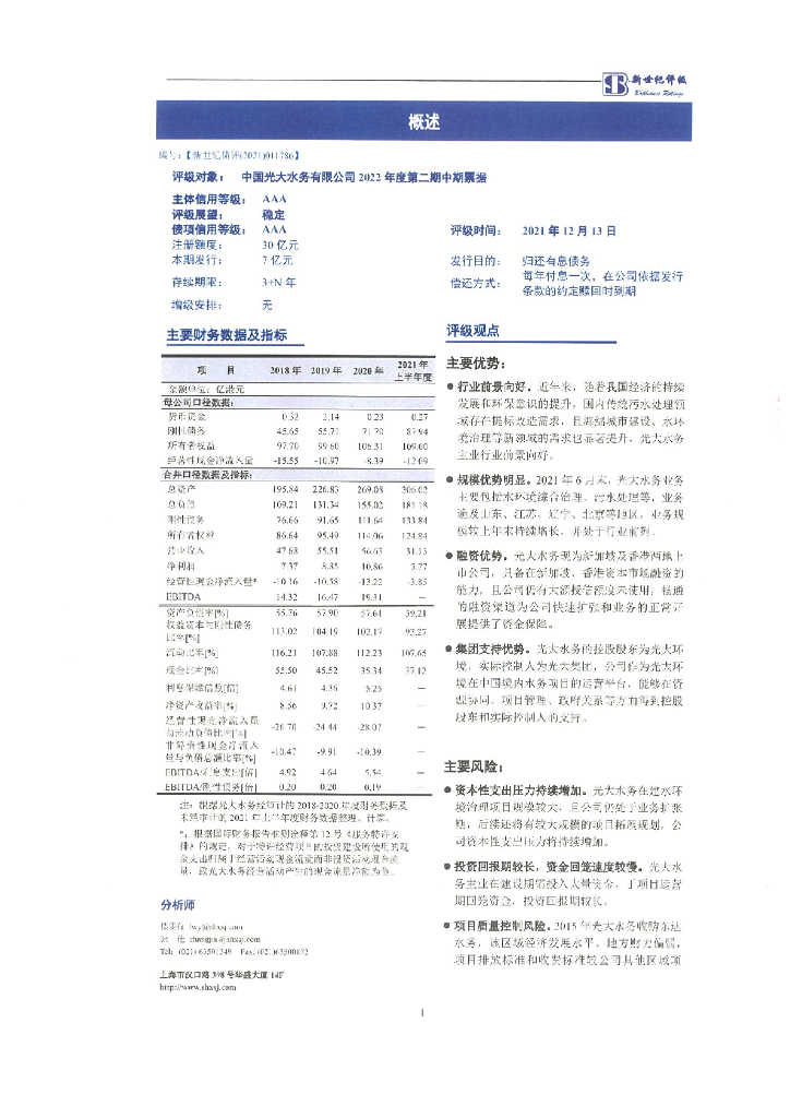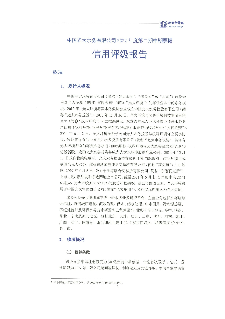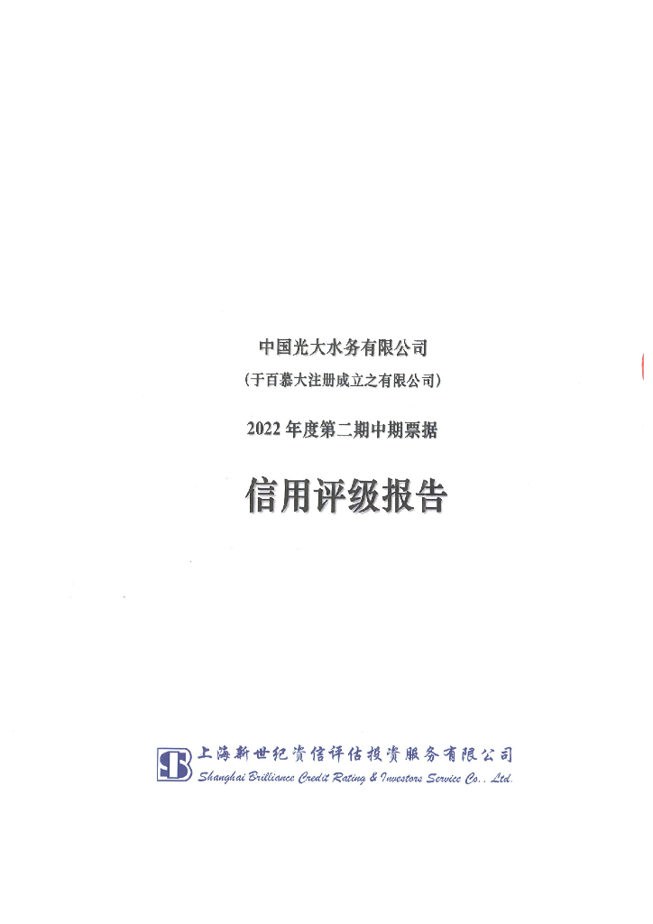 新世纪:中国光大水务有限公司2022年度第二期中期票据信用评级报告.pdf