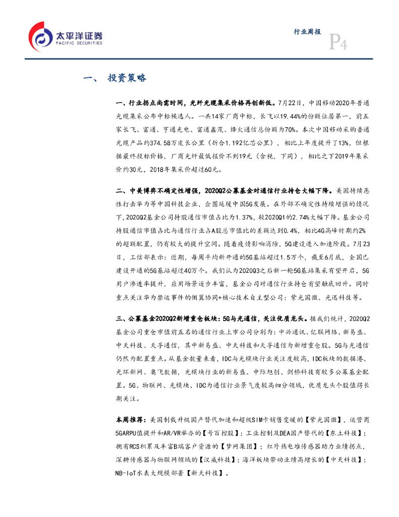 太平洋证券:通信设备Ⅲ行业周报:光纤光缆价格创新低,关注Q2基金重仓个股.pdf