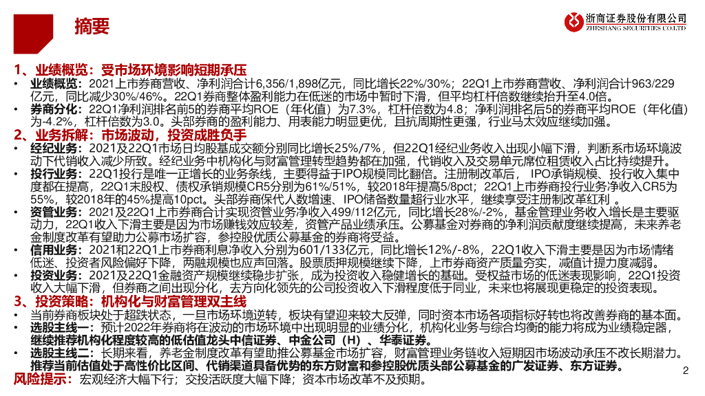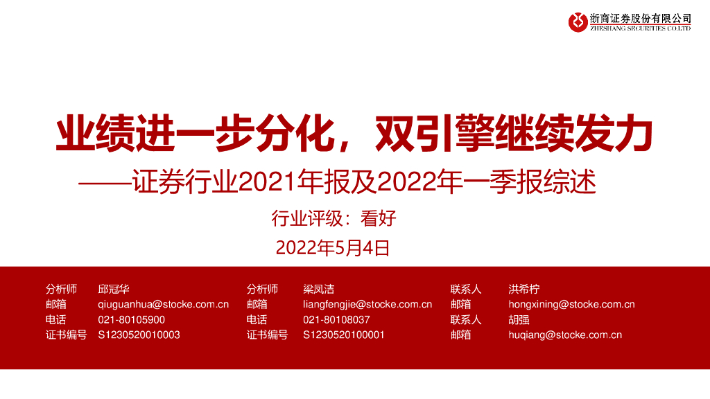 浙商证券:证券行业2021年报及2022年一季报综述:业绩进一步分化,双引擎继续发力.pdf