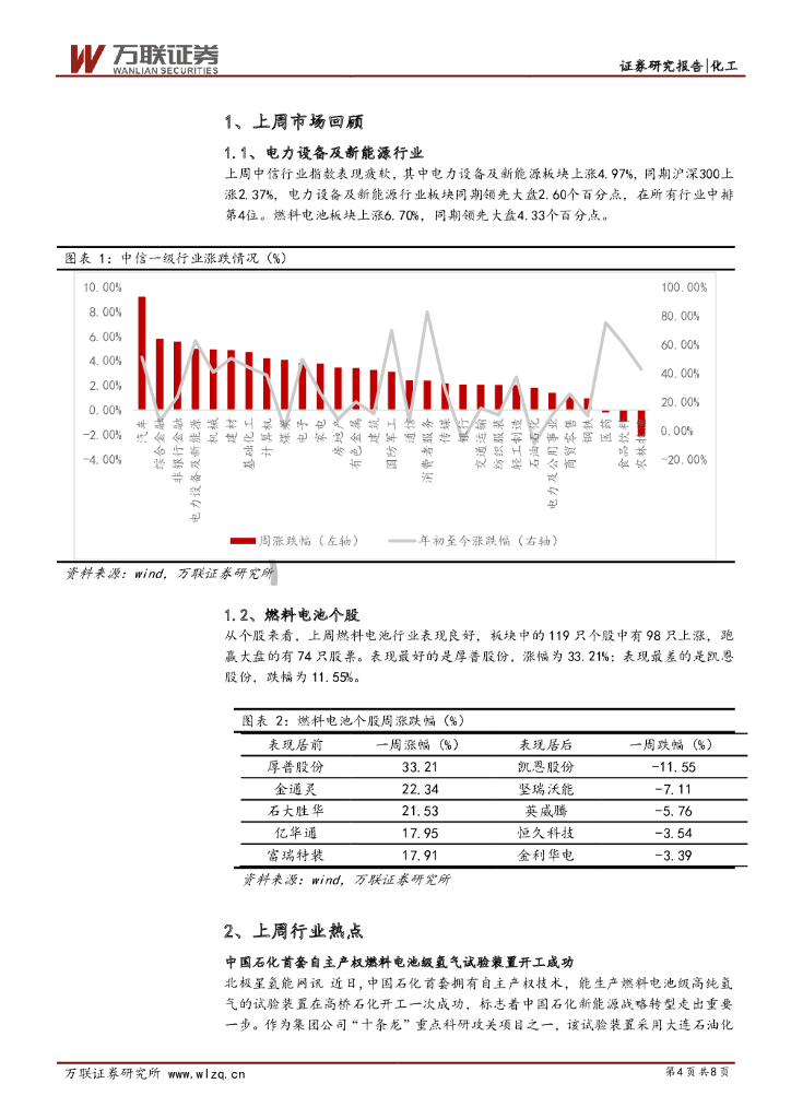 万联证券:燃料电池行业周观点:首个国家氢能质检中心落地,氢能发展提速.pdf