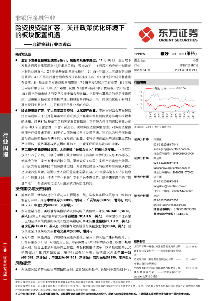 东方证券:非银金融行业周观点:险资投资端扩容,关注政策优化环境下的板块配置机遇.pdf