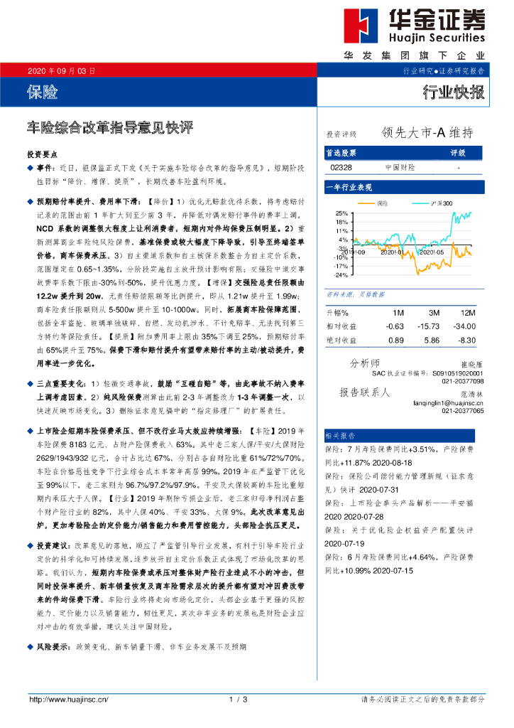 华金证券:保险行业快报:车险综合改革指导意见快评.pdf
