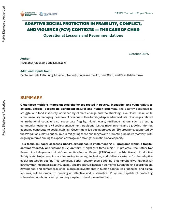 世界银行:2025年在脆弱、冲突和暴力(FCV)背景下适应性社会保护:以乍得为例报告(英文版).pdf