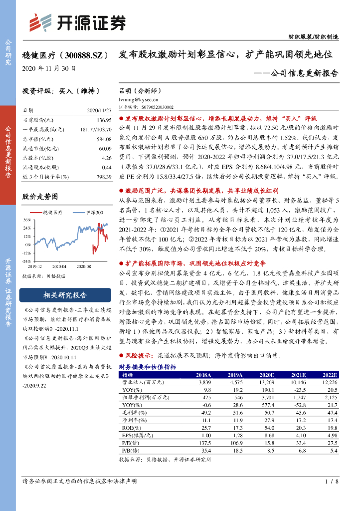 开源证券:稳健医疗(300888)-公司信息更新报告:发布股权激励计划彰显信心,扩产能巩固领先地位.pdf