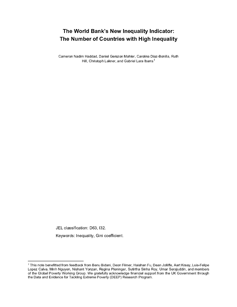 世界银行:世界银行新的不平等指标:高度不平等国家的数量(英文版).pdf