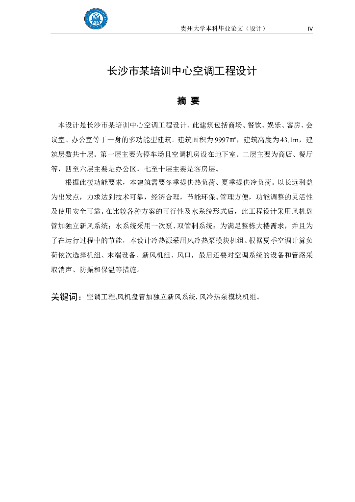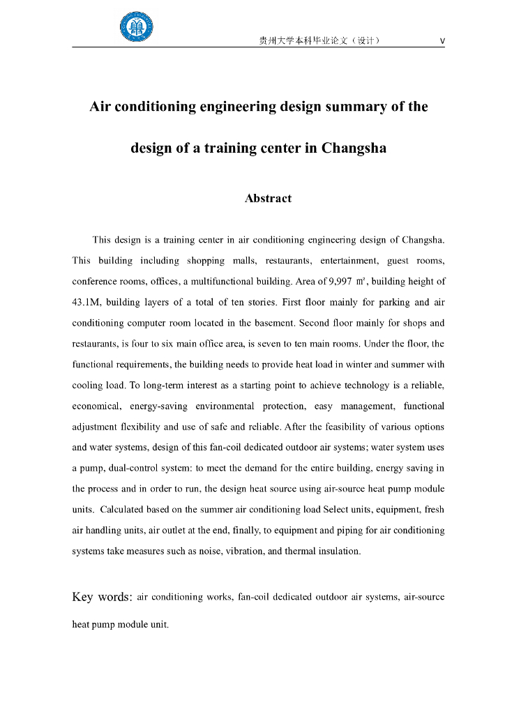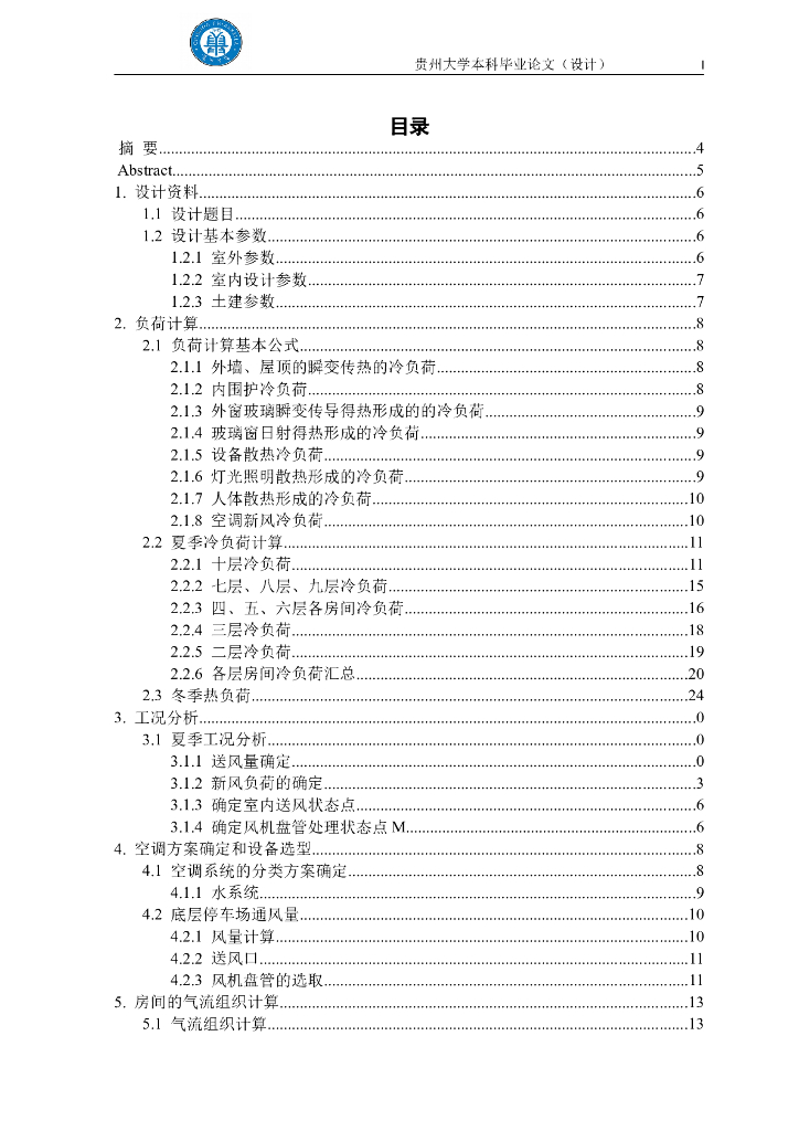 贵州某高校建环暖通空调毕业设计说明(优秀毕业设计).doc