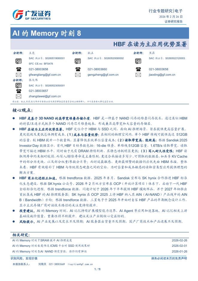 广发证券:AI的Memory时刻8-HBF在读为主应用优势显著.pdf