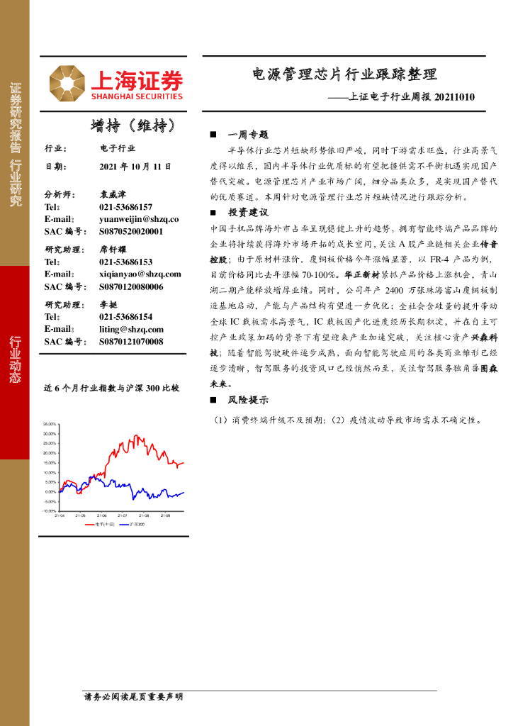 上海证券:上证电子行业周报:电源管理芯片行业跟踪整理.pdf