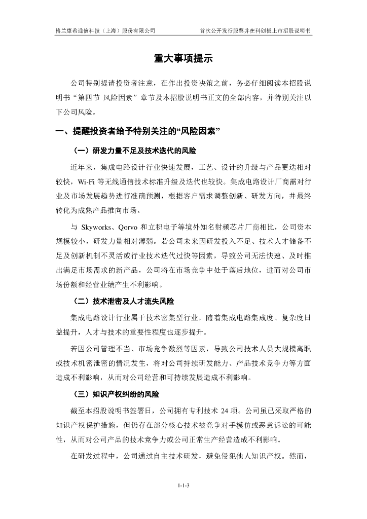 格兰康希通信科技(上海)股份有限公司上交所科创板IPO上市招股说明书.pdf