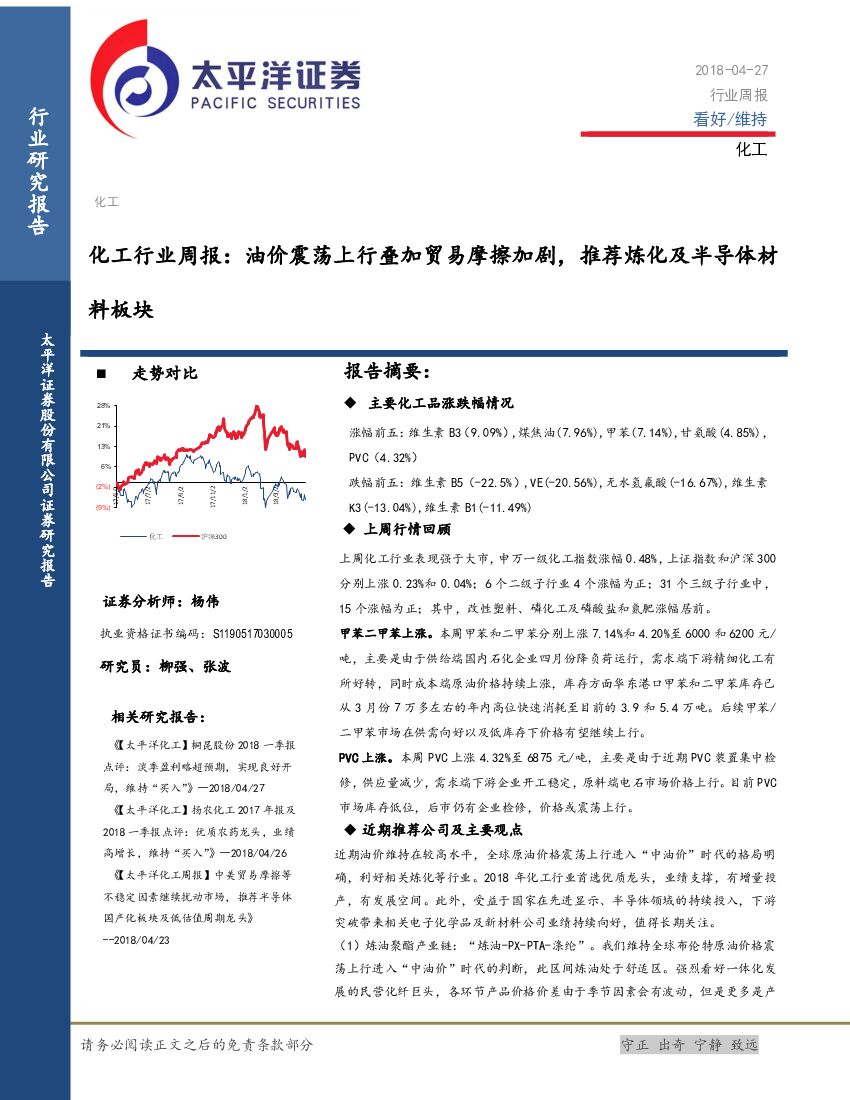 太平洋证券:化工行业周报:油价震荡上行叠加贸易摩擦加剧,推荐炼化及半导体材料板块.pdf