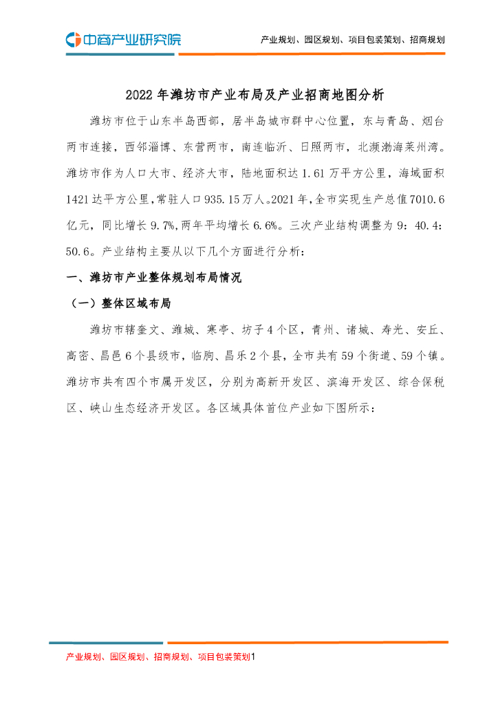 2022年潍坊市产业布局及产业招商地图分析.pdf