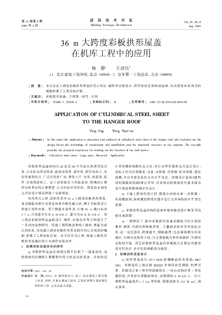 36m大跨度彩板拱形屋盖在机库工程中的应用.pdf