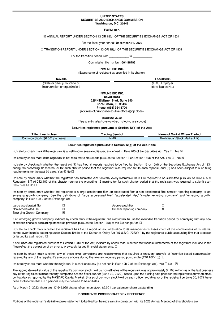 INmune Bio Inc.(INMB)2022财年年度报告(英文版).pdf