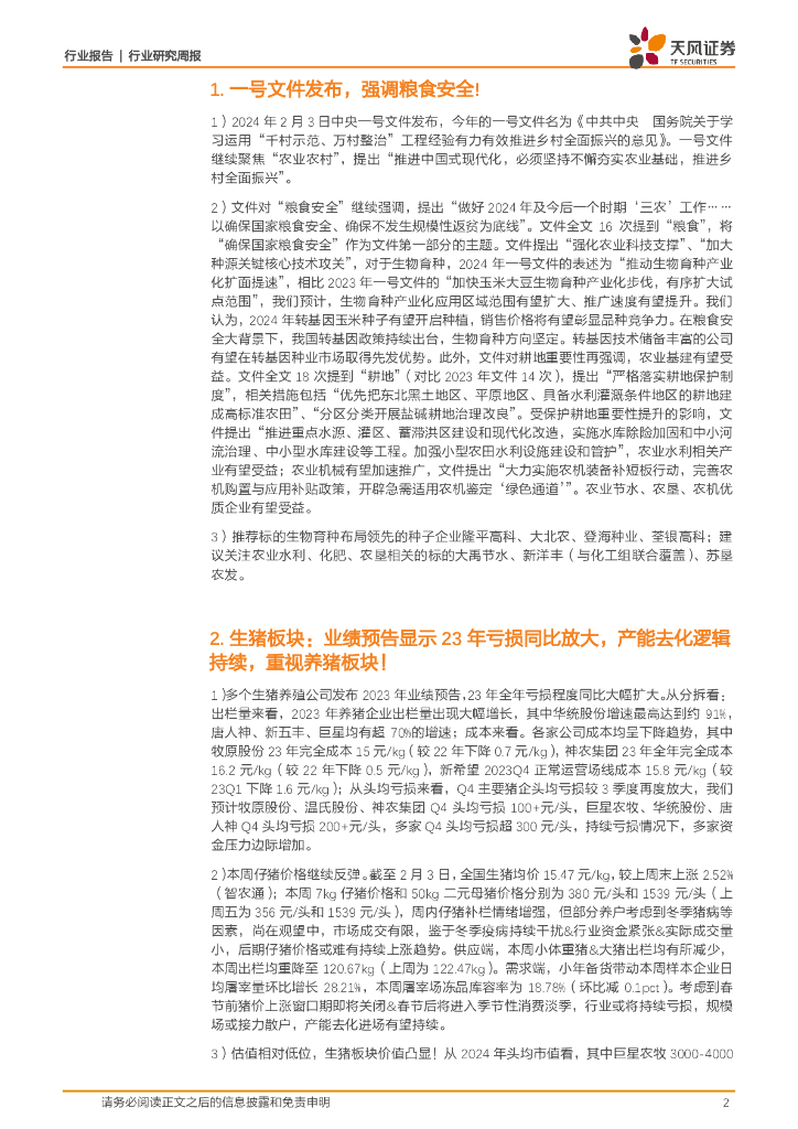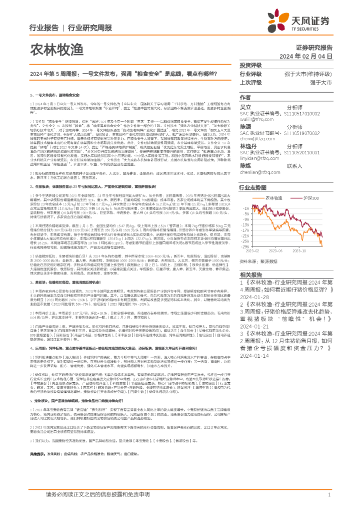天风证券:农林牧渔行业2024年第5周周报:一号文件发布,强调“粮食安全”是底线,看点有哪些?.pdf