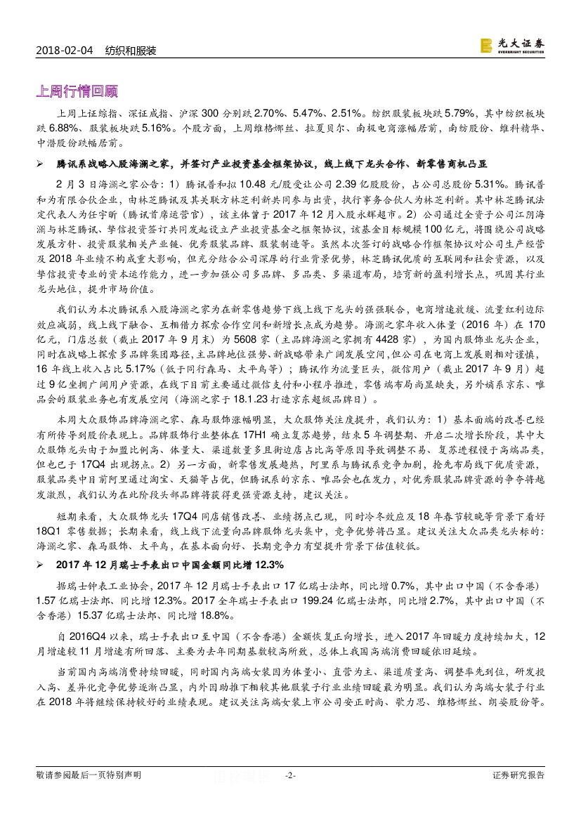 光大证券:纺织和服装行业周报:海澜之家获腾讯入股、拟设立基金,12月瑞士手表出口中国增12%.pdf