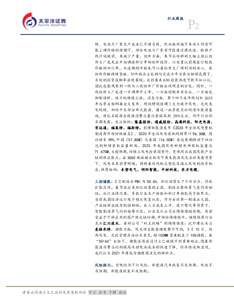 太平洋证券:电气设备行业周报:新能源车2月销量高增“十四五”规划纲要利好新能源发电.pdf