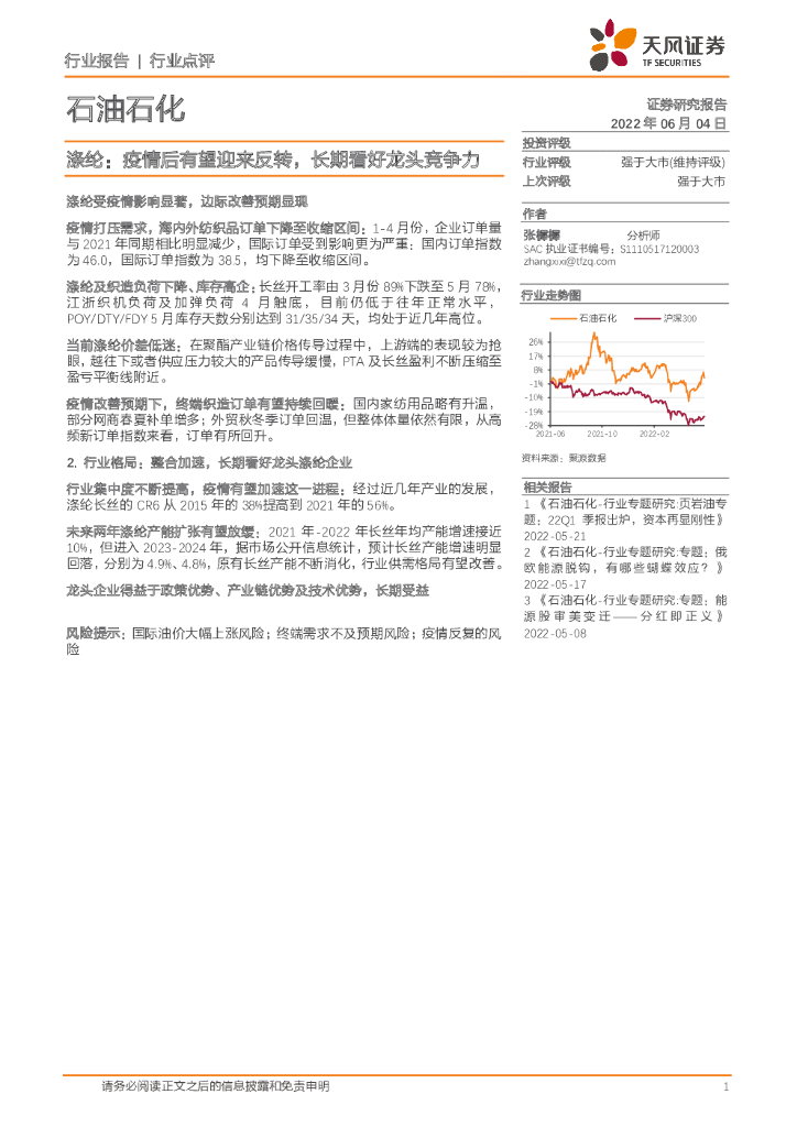 天风证券:石油石化行业点评:涤纶:疫情后有望迎来反转,长期看好龙头竞争力.pdf