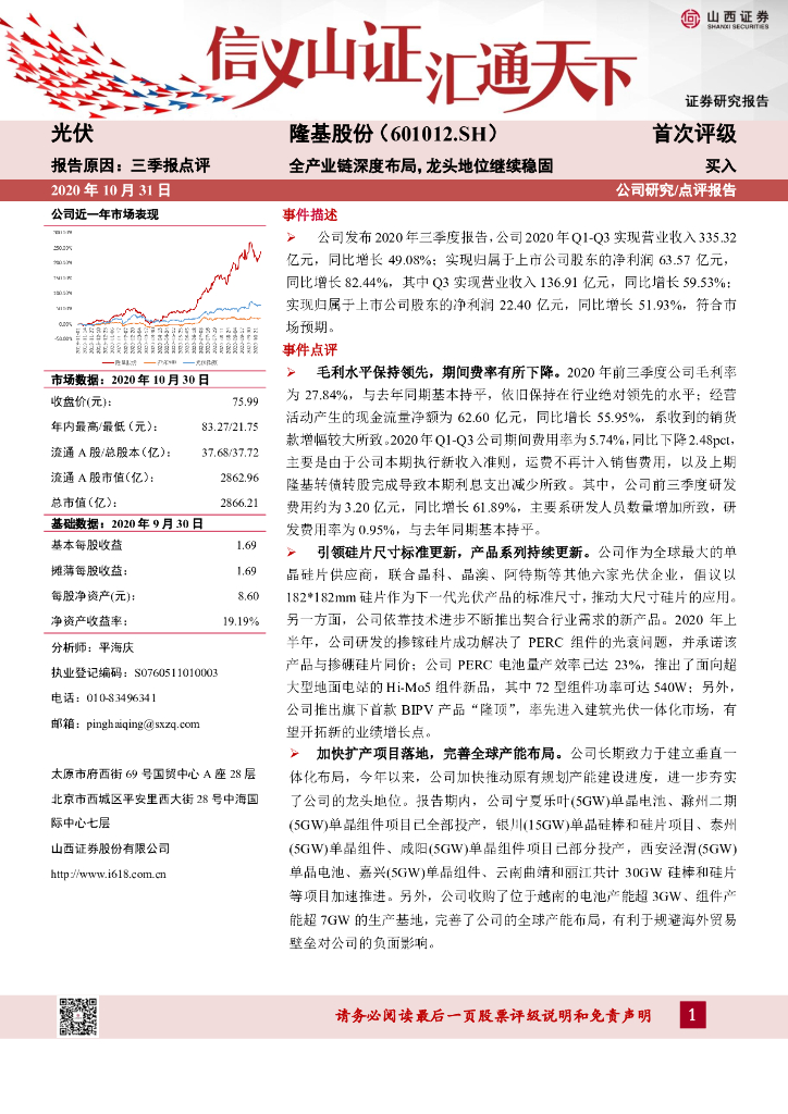 山西证券:隆基股份(601012)-全产业链深度布局,龙头地位继续稳固.pdf