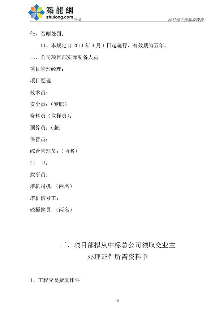 建筑安装公司工程项目部工作标准规程.pdf