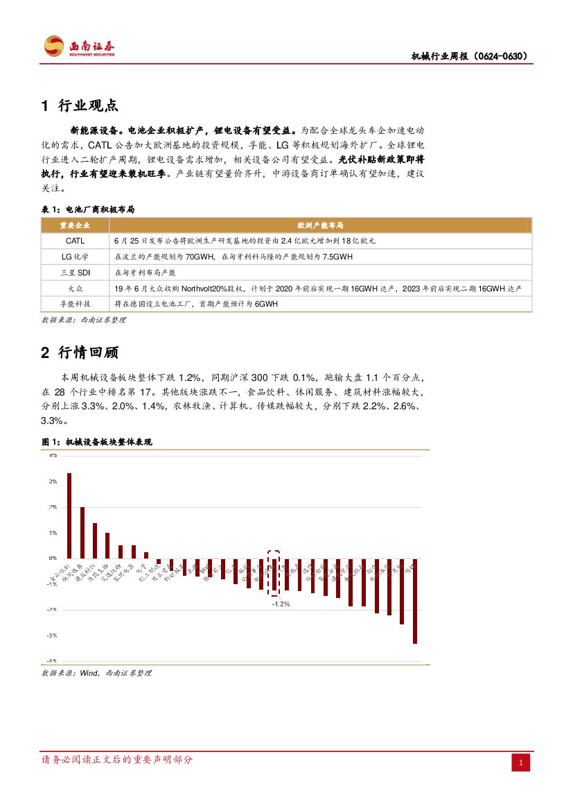 西南证券:机械行业周报:电池企业积极扩产,锂电设备有望受益.pdf