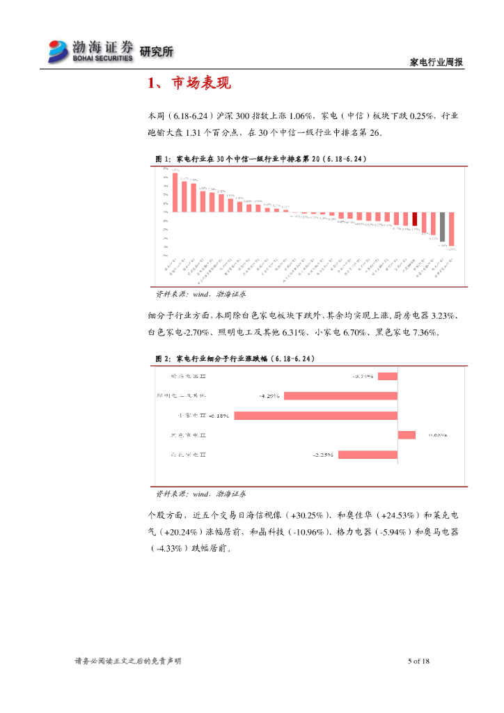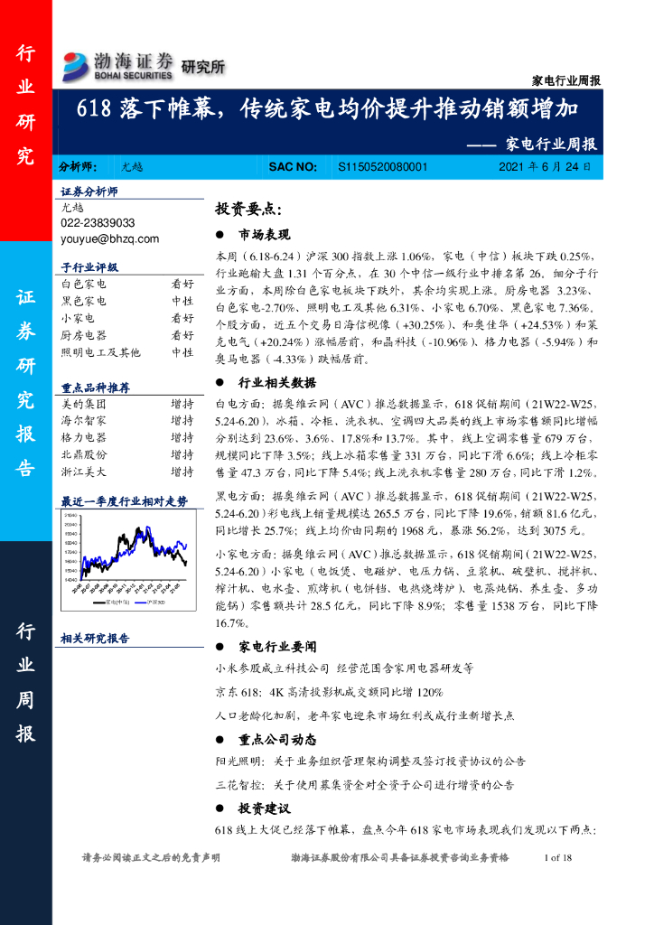 渤海证券:家电行业周报:618落下帷幕,传统家电均价提升推动销额增加.pdf