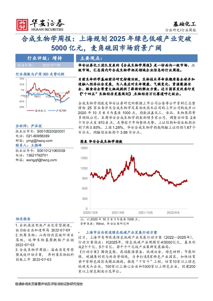 华安证券:合成生物学周报:上海规划2025年绿色低碳产业突破5000亿元,麦角硫因市场前景广阔.pdf