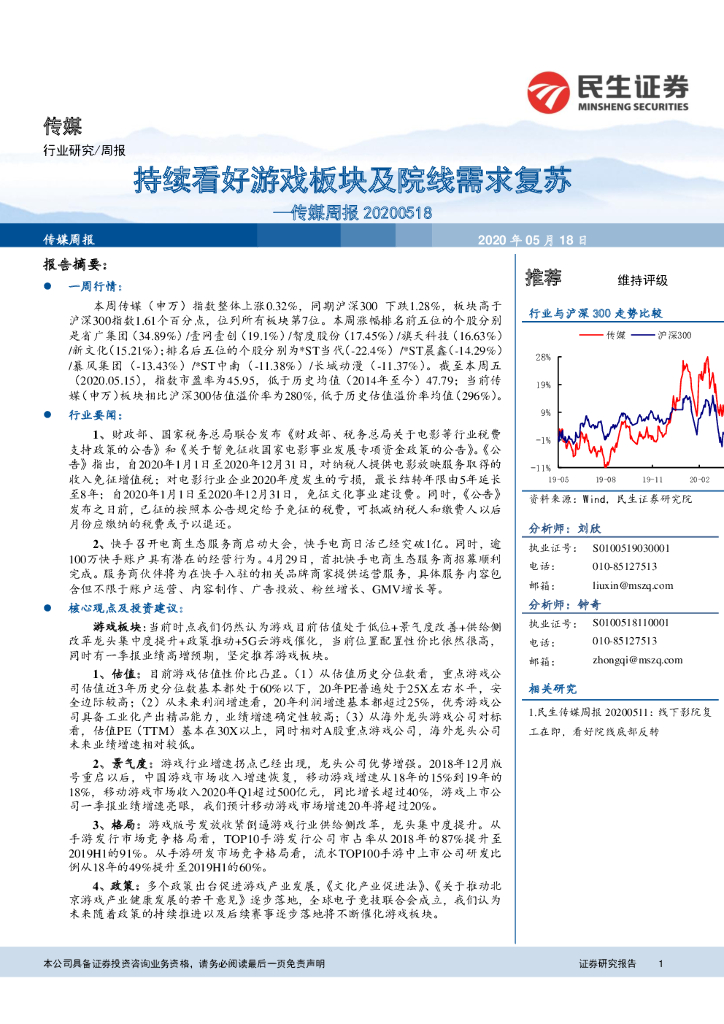 民生证券:传媒周报:持续看好游戏板块及院线需求复苏.pdf