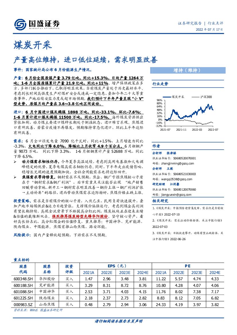 国盛证券:煤炭开采:产量高位维持,进口低位延续,需求明显改善.pdf