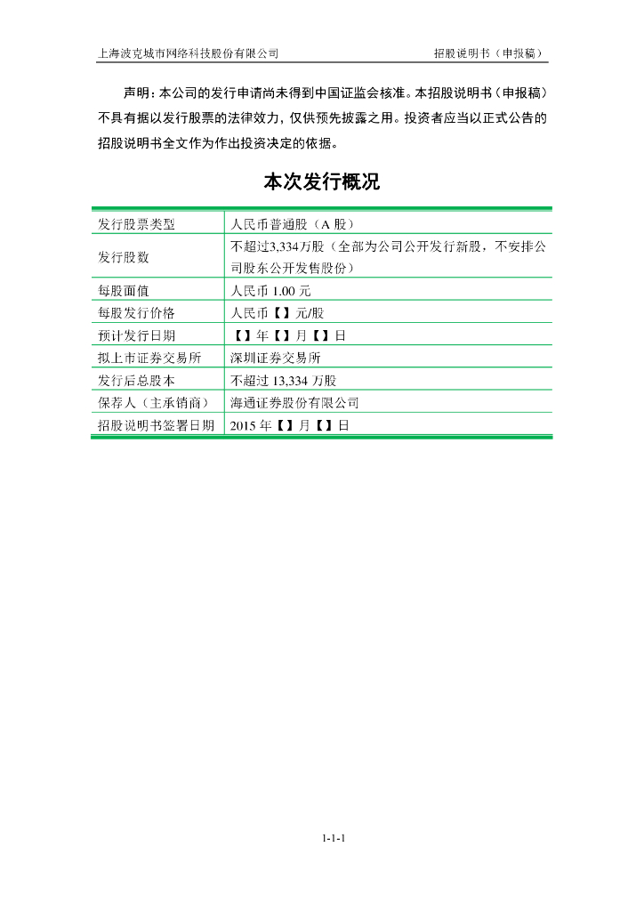 上海波克城市网络科技股份有限公司深交所创业板IPO上市招股说明书.pdf