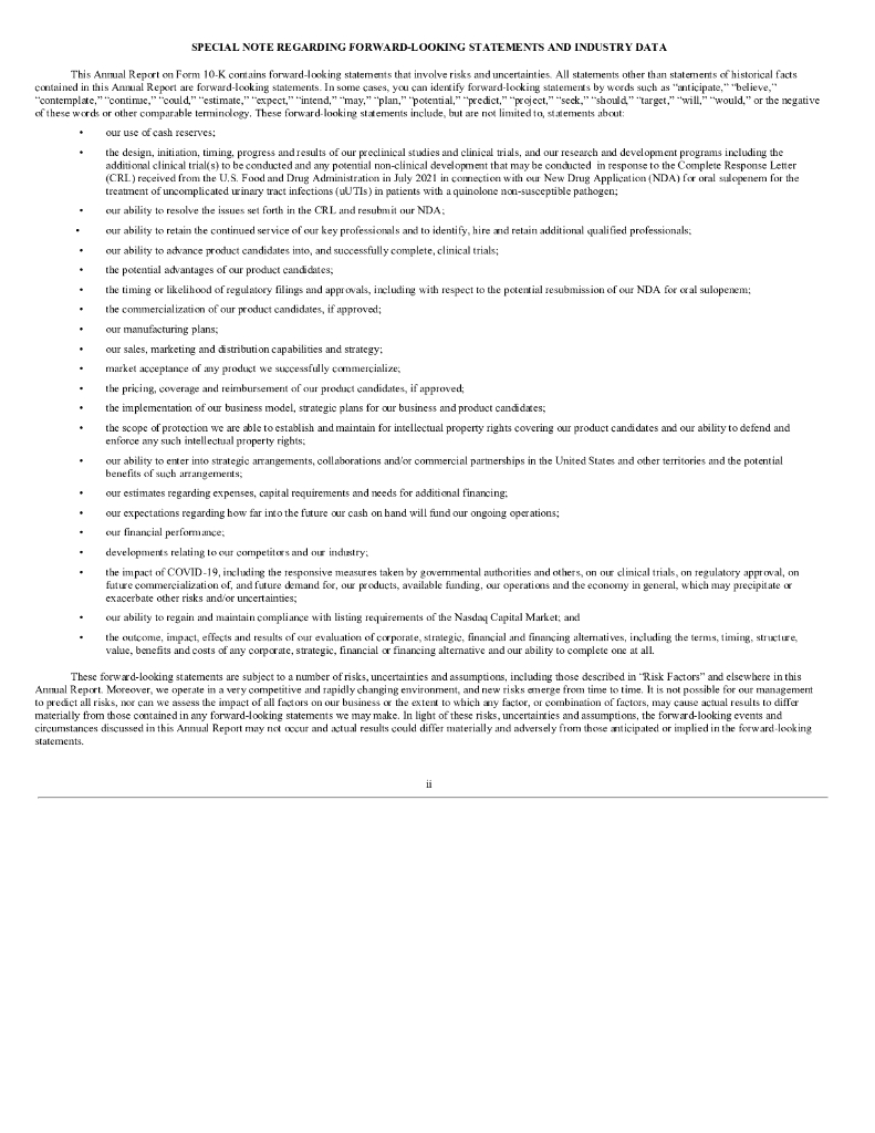 Iterum Therapeutics plc(ITRM)2021财年年度报告(英文版).pdf