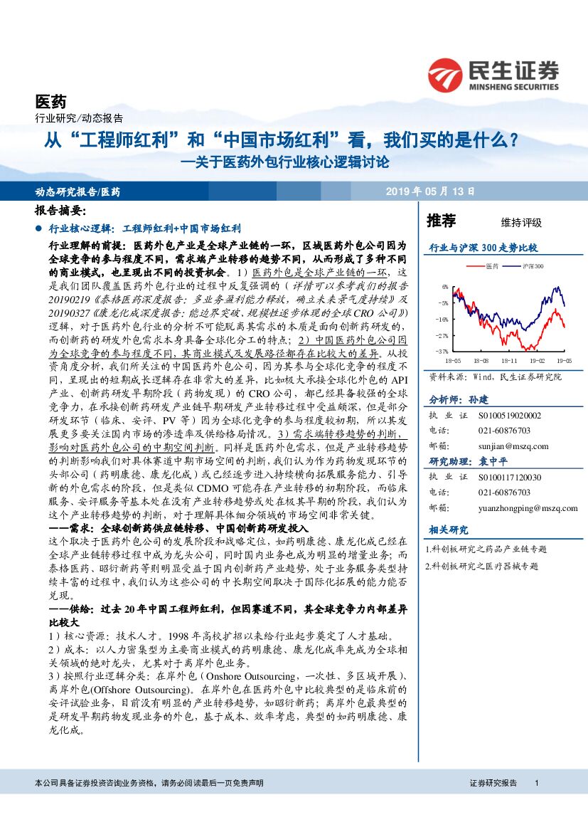 民生证券:医药行业动态报告:关于医药外包行业核心逻辑讨论-从“工程师红利”和“中国市场红利”看,我们买的是什么?.pdf