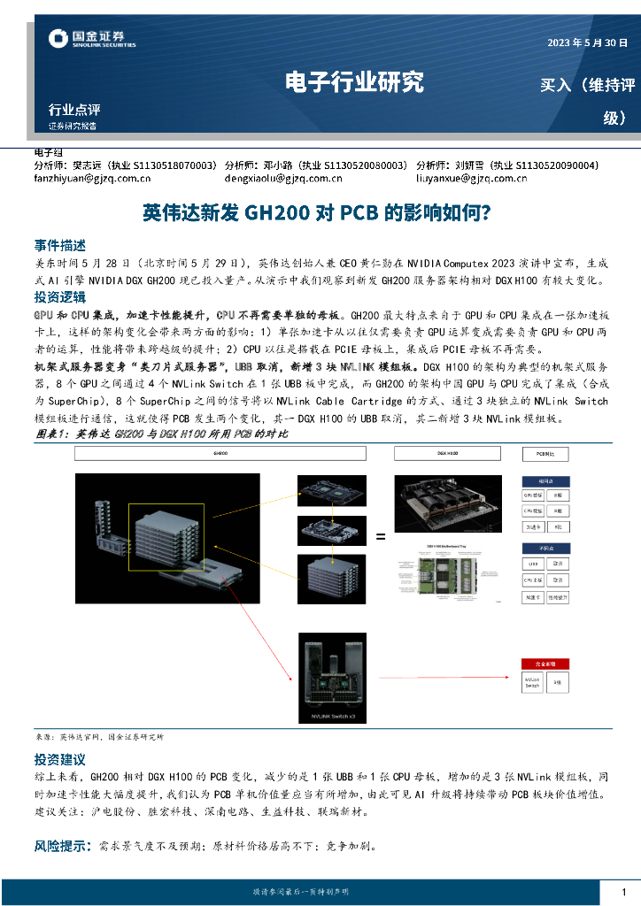 国金证券:电子行业研究:英伟达新发GH200对PCB的影响如何?.pdf