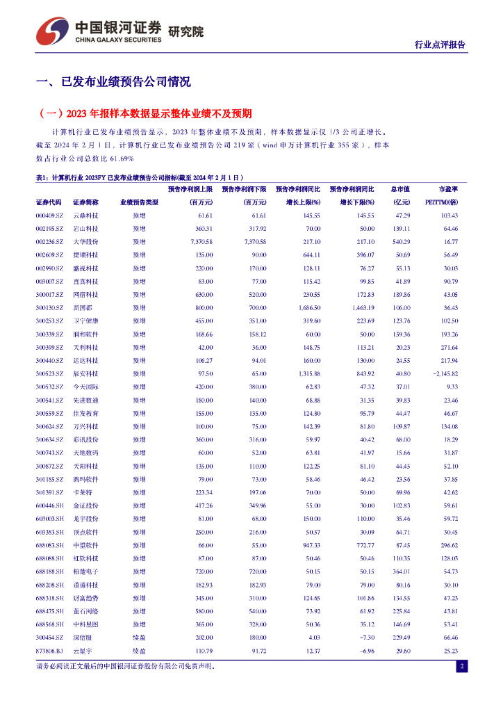 中国银河:计算机行业2023年已发布业绩预告总结及业绩前瞻:2023年行业业绩继续下探,个股分化加剧.pdf