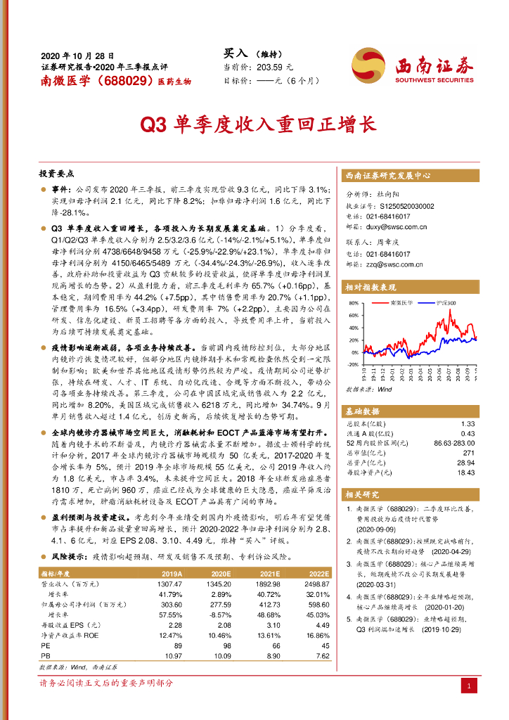 西南证券:南微医学(688029)-Q3单季度收入重回正增长.pdf
