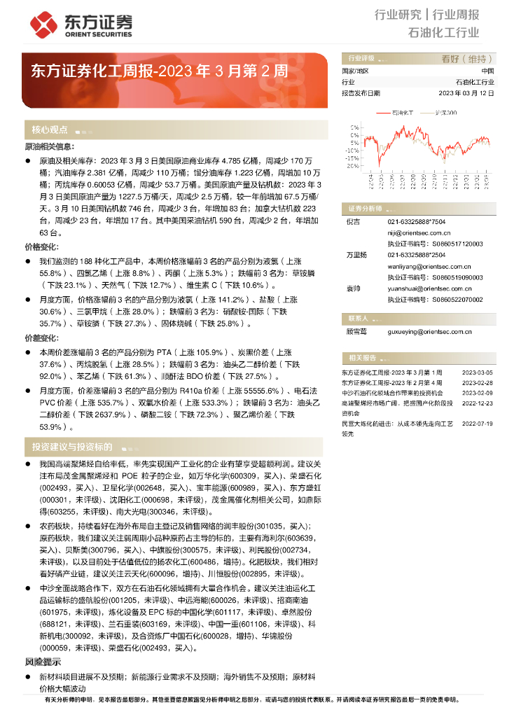 东方证券:化工周报-2023年3月第2周.pdf