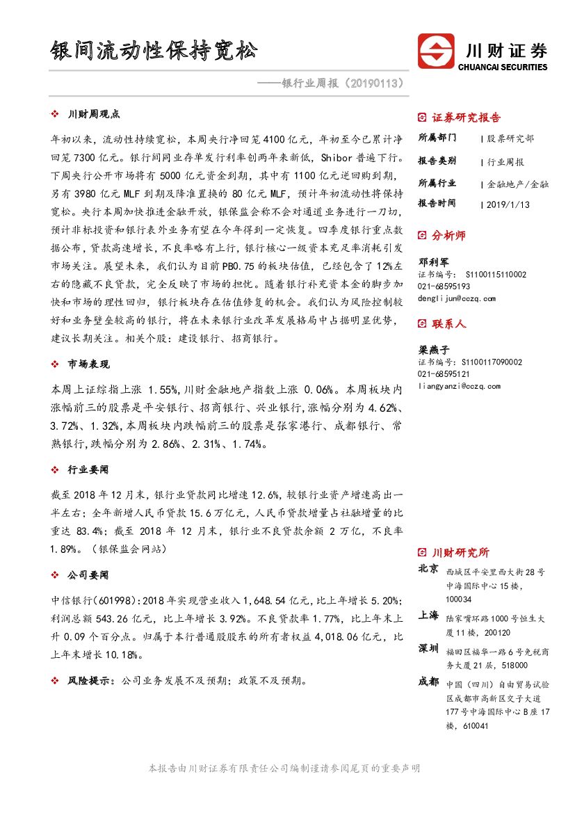 川财证券:银行业周报:银间流动性保持宽松.pdf