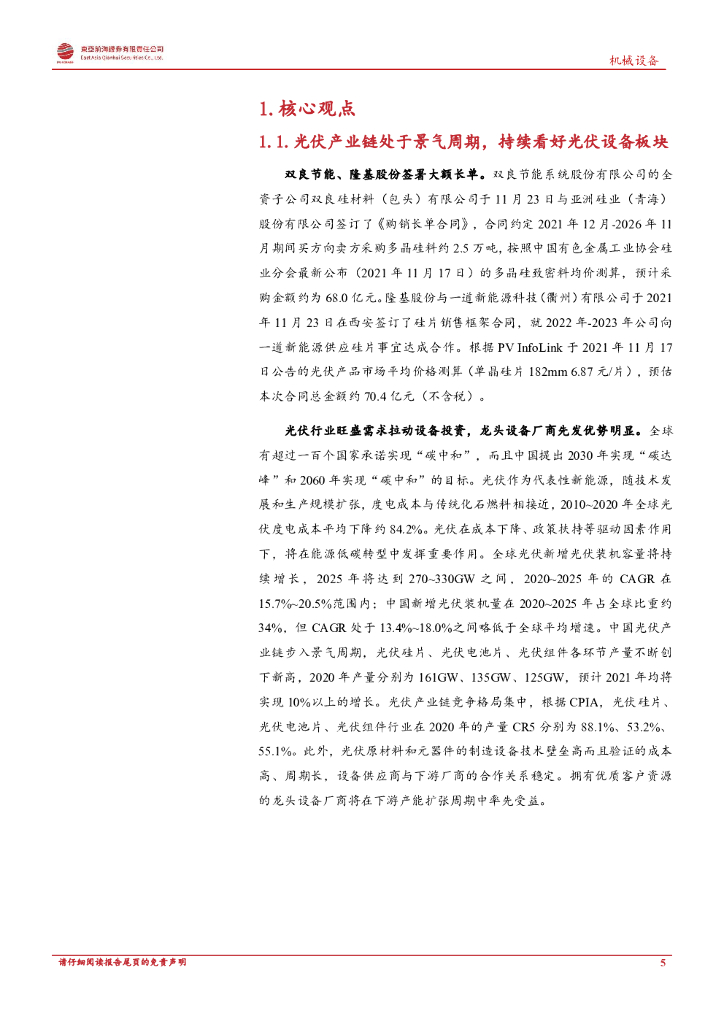 东亚前海证券:东亚前海机械行业周报:光伏产业链处于景气周期,持续看好光伏设备板块.pdf