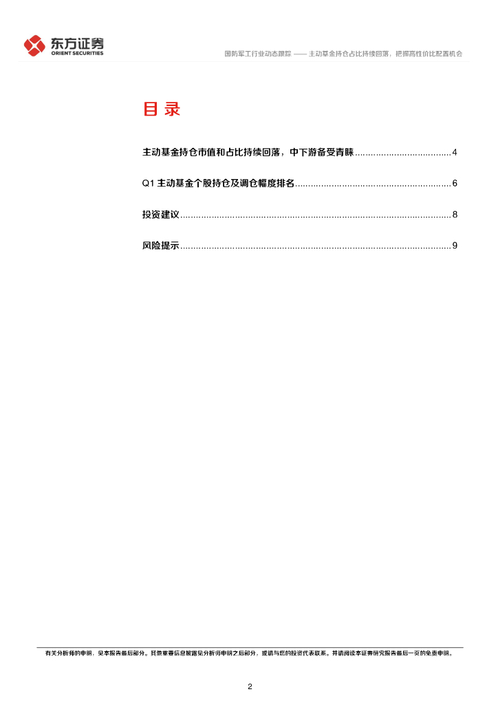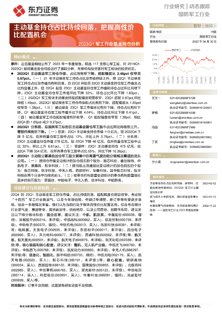 东方证券:2023Q1军工行业基金持仓分析:主动基金持仓占比持续回落,把握高性价比配置机会.pdf