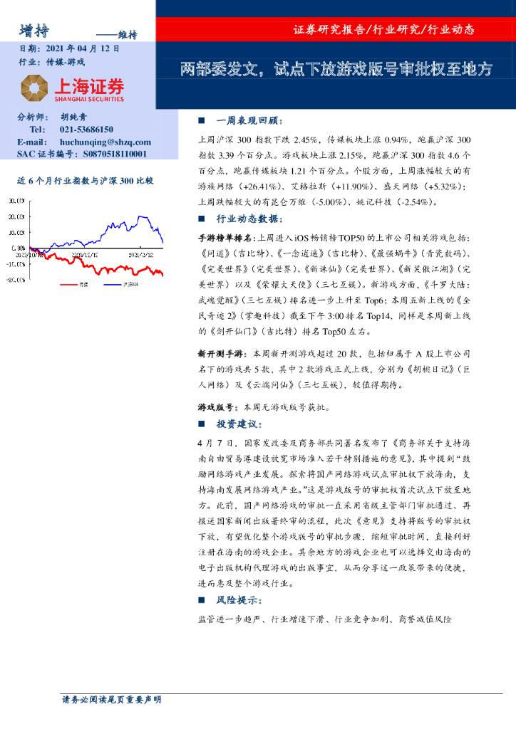 上海证券:传媒-游戏:两部委发文,试点下放游戏版号审批权至地方.pdf