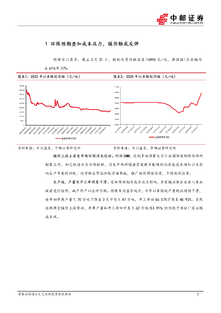 中邮证券:有色金属:环保预期叠加成本压力,镁价触底反弹.pdf