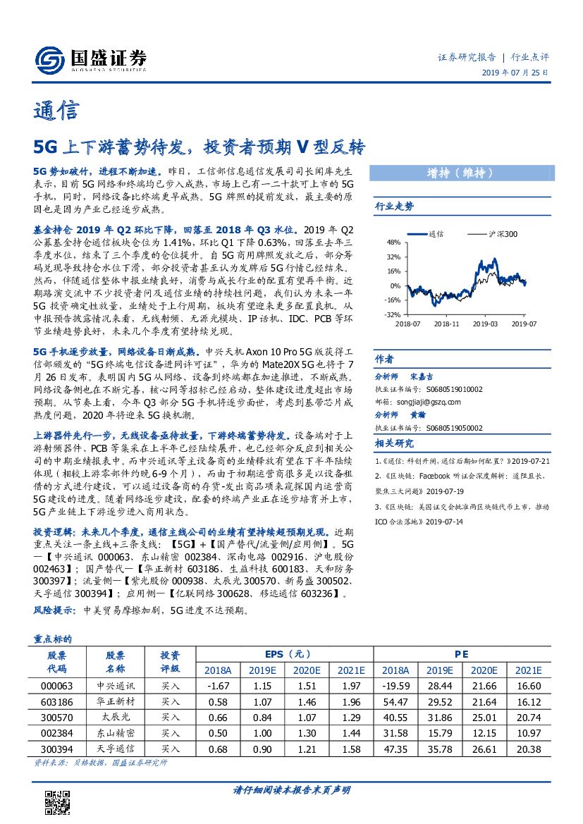 国盛证券:通信:5G上下游蓄势待发,投资者预期V型反转.pdf