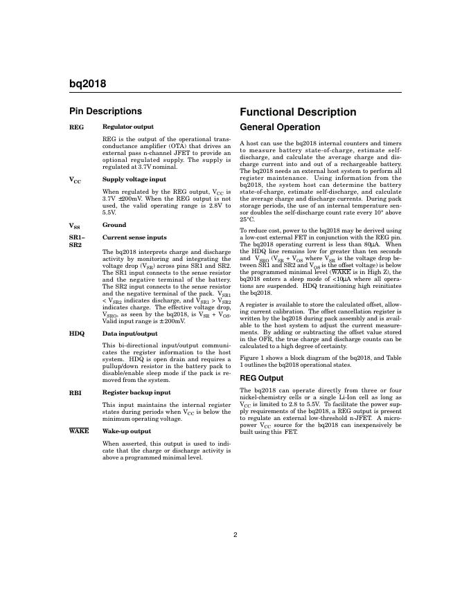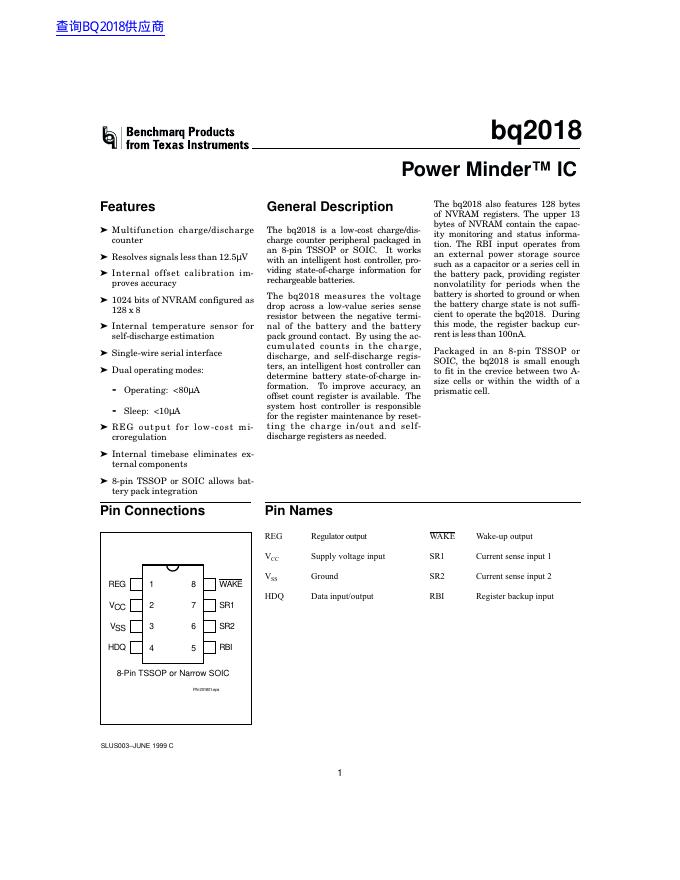 TEXAS INSTRUMENTS bq2018 数据手册.pdf