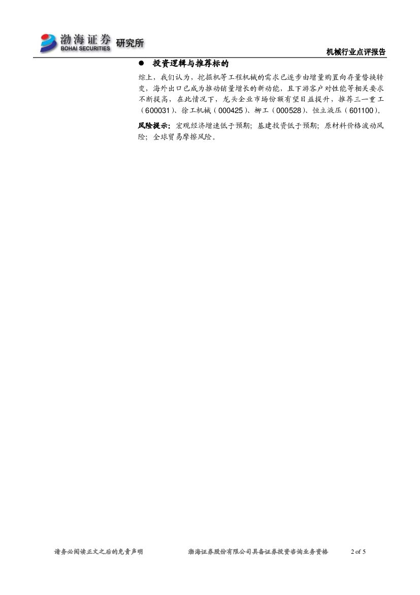 渤海证券:2019年3月份挖掘机销量数据点评:挖掘机销量稳步提升,全年有望创新高.pdf